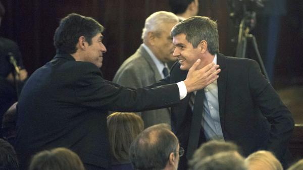 Una singular foto apareció en el sitio Infobae. El reportero Adrián Escandar captó el momento en que el actual jefe de gabinete, Marcos Peña, se saluda con palmadas cariñosas con uno de sus predecesores, hoy referente de la oposición en el Senado, Juan Manuel Abal Medina.