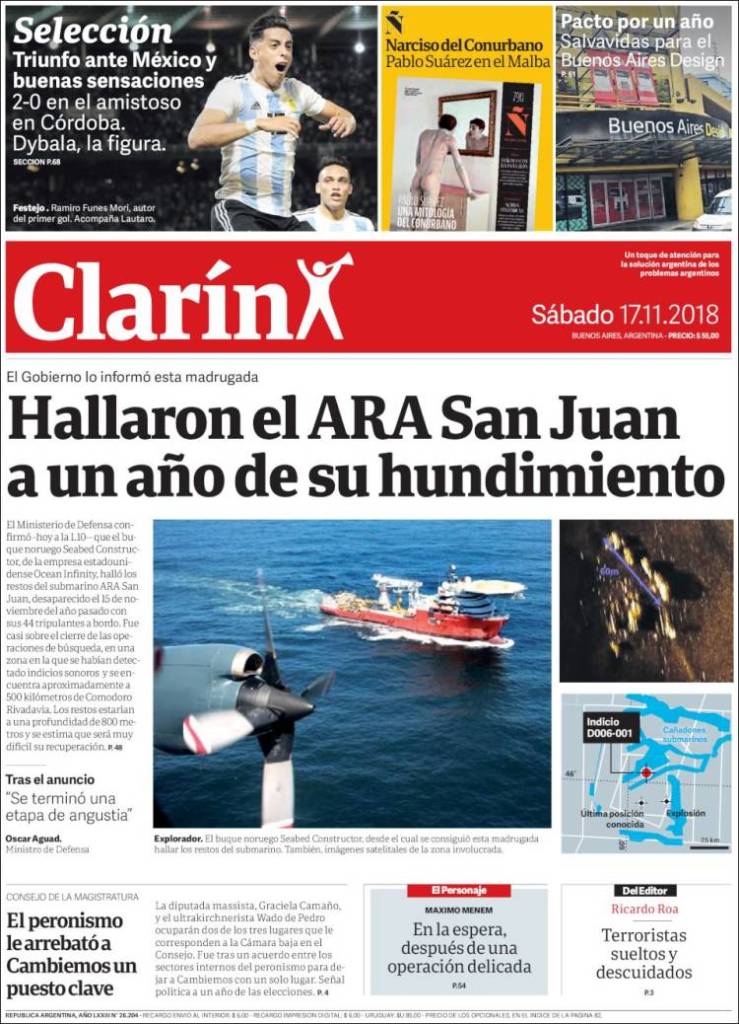 Sin embargo, luego de los concursos y la elección de la empresa internacional con la que se emprendería la búsqueda del submarino y de los reclamos y las tensiones entre los familiares y el Poder Ejecutivo, la firma Ocean Infinity dio a conocer el hallazgo del buque.