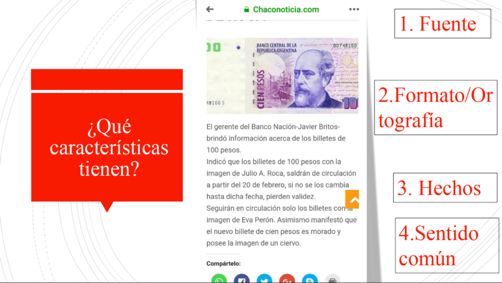 - Sentido común: Antes de apretar el botón «compartir», reflexionemos no más de 30 segundos para que esa nota termine de cuadrarnos. De esta forma no nos dejaremos llevar por impulsos que pueden nacer por causa de nuestra personalidad o por la ideología y el discurso político que se fomente la nota.