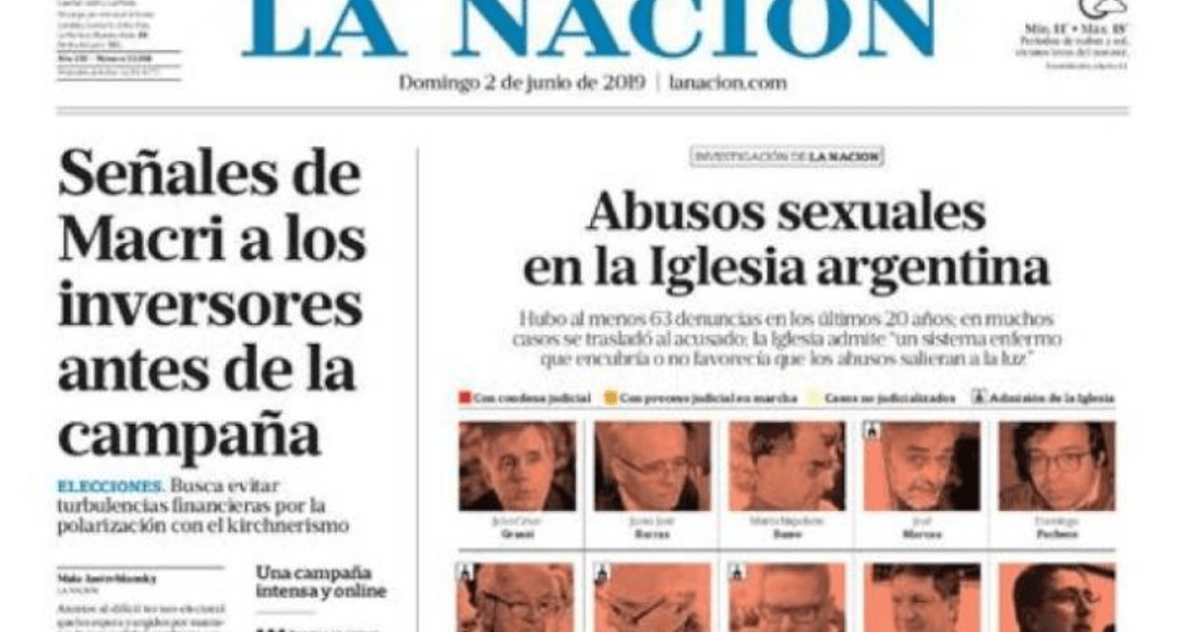 Una de las sorpresas celebrada por varios analistas de la política se encuentra en la tapa del diario La Nación. Allí se enmarca la cara de decenas de miembros de la Iglesia involucrados en abusos sexuales. Todo esto en un medio con una postura editorial que se apoya en ideas clericales y está en contra en la ampliación de derechos como lo es la legalización de la Interrupción Voluntaria del Embarazo (IVE).