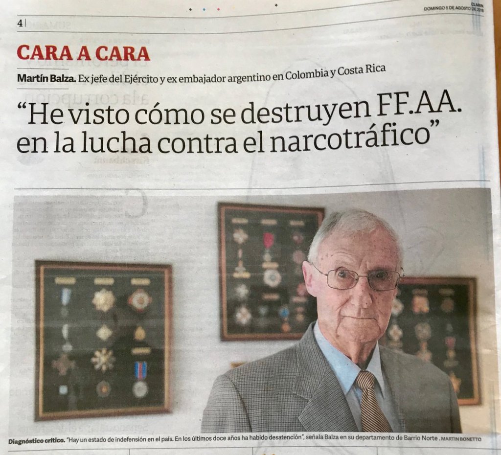 El ex comandante, autor de la autocrítica militar por la represión ilegal durante la dictadura militar, señaló que en las naciones “que emplearon a las Fuerzas Armadas en la lucha contra el narcotráfico, los resultados han sido negativos, letales, desmoralizadores y afectaron seriamente la esencia y la profesionalidad”.