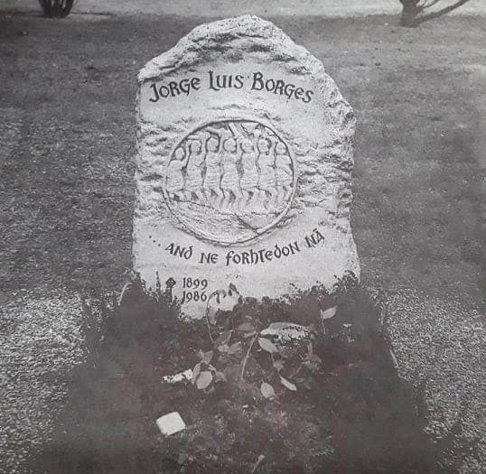 Los restos de Borges descansan en el cementerio de Planpalais, en Ginebra, Suiza, en un lugar muy pacífico, agradable y con árboles. Debajo de una imagen de 7 guerreros blandiendo sus armas, se lee una frase en inglés de un antiguo poema que conmemora una batalla. “And ne forthedon na”, “y que no temieran”. Es parte de la arenga de un líder sajón a sus hombres antes del combate: los exhorta a no temer ante la muerte, a tener coraje