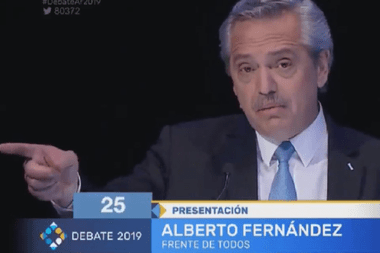Fernández se colocó en el centro del cuadrilátero desde el inicio. Trató de falaz a Macri, cuando refrescó la memoria: mencionó que su contrincante de 2015, Daniel Scioli, quien antes de perder por dos puntos le había pronosticado como sería su mandato, estaba sentado en primera fila del auditorio.