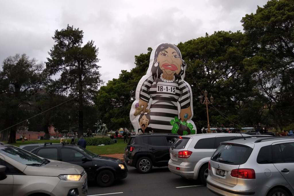 El debate fue un show, precedido por el corte de tránsito espectacular en las inmediaciones de la Facultad de Derecho, donde se montó una muñeca gigantesca con la imagen de Cristina, vestida con un traje de presidiaria, con la fecha 18-01-15, en obvia referencia al día de la muerte sospechosa del fiscal Alberto Nisman, que investigaba la causa AMIA.