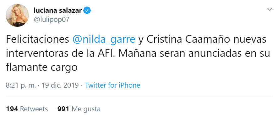 Todo comenzó con un tweet de la modelo y actual influencer política, Luciana Salazar. Allí se atrevió a anunciar a las futuras interventoras de la agencia.