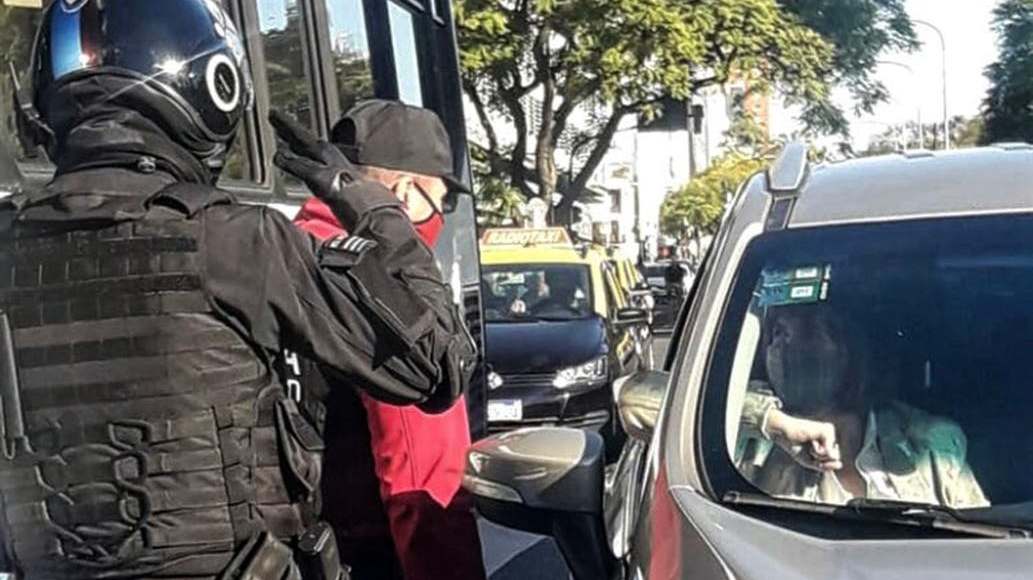 Los medios simpatizantes del «banderazo», entre ellos La Nación, señalaron que «un miembro de las fuerzas de seguridad le hace la venia a modo de reconocimiento por su gestión al frente del Ministerio de Seguridad de la Presidencia de Mauricio Macri».