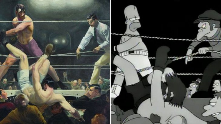 Por el contrario, hizo seguir la electrizante lucha. Y a los 57 segundos del segundo asalto, Dempsey volteó al Toro y ganó. El pintor George Wesey Bellows inmortalizó esa imagen, editada libre e histriónicamente por Matt Groening, quien por supuesto mostró a Homero cómo un voluntarioso padre de familia, con varios kilos de más.