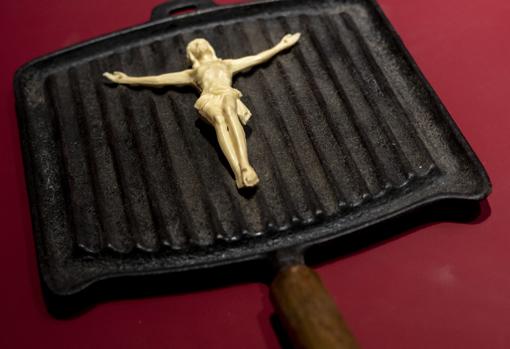 “Así conviven – destacó -, Anunciaciones, Crucifixiones, Cristos, Vírgenes, ángeles, santos, monjas, Papas… con el catálogo completo del Kamasutra, la bomba atómica o figuras como Hitler y Mussolini. En una vitrina, sus Ideas para infiernos, que concibe como una serie irónica sobre la justicia divina: un Crucificado a la parrilla, santos a punto de ser licuados en una batidora, metidos en una tostadora, en una picadora, encerrados en jaulas bajo unas palomas defecando…”