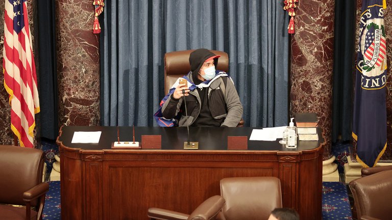 Alimentados por un discurso que Trump había dado el mismo mediodía del miércoles 6 de enero, cientos de manifestantes, algunos armados, tomaron durante la tarde al edificio que alberga ambas cámaras del Congreso nacional. Tomaron oficinas de los trabajadores legislativos, rompieron puertas y ventanas, y entraron a la propia Cámara en la que sesionan los y las senadoras.