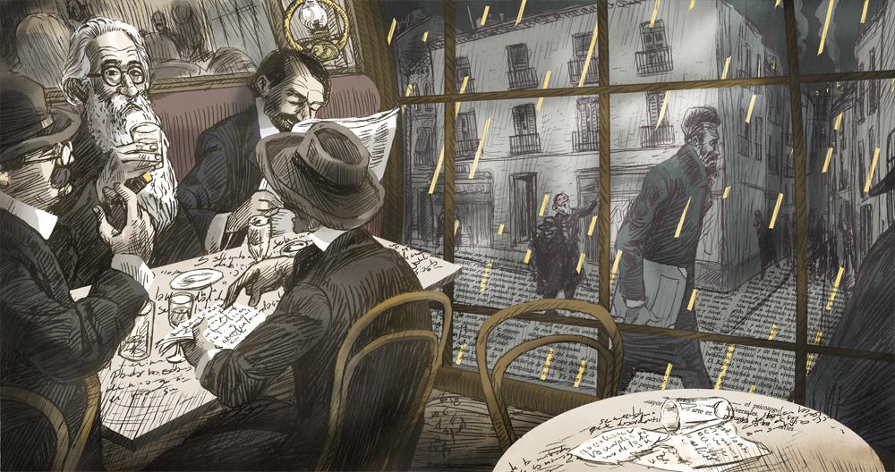 El mesero que nos atiende, curioso, dilata su quehacer queriendo alcanzar el desenlace. Al resto de los sabios presentes ya se les advierte una ansiedad creciente por conocer el fin de la historia. A mí, ni que decirlo.