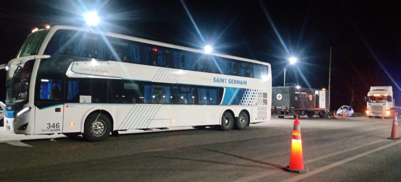 El ómnibus de la empresa Saint Germain intentaba ingresar a la capital de Santa Cruz, proveniente de Ushuaia y en dirección a a El Chaltén, Fue detenido ayer por la tarde en el puesto de control policial de Chimen Aike, Allí el personal sanitario les realizó un testeo rápido de Covid-19 a todos los que se encontraban a bordo.