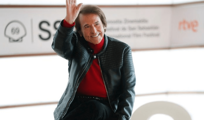 Vestido con una cazadora de cuero negro sobre un favorecedor jersey de cuello cisne rojo y luciendo su enérgica melena aún negra, Raphael demostró su buena forma compartiendo anécdotas con los periodistas que llenaban la sala de prensa del Kursaal, sede del Festival de Cine de San Sebastián, tras la proyección del segundo capítulo de la serie Raphaelismo, que se estrenará en la plataforma Movistar+ en 2022.
