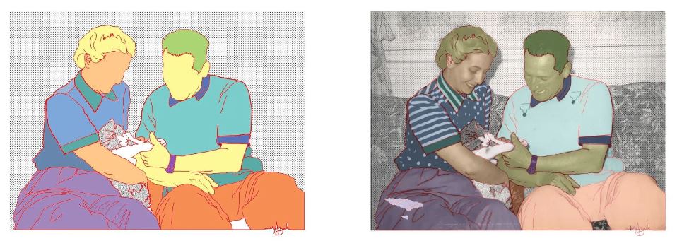 - La ilustración destacada se logró por medio de una intervención digital de una foto. La artista Mara Paganetti, igual que la autora de la nota, es fanática de los gatitos. Se permitió una licencia: en realidad Eva y Juan Domingo Perón tenían dos caniches, lo que no cambia la ternura de la imagen.