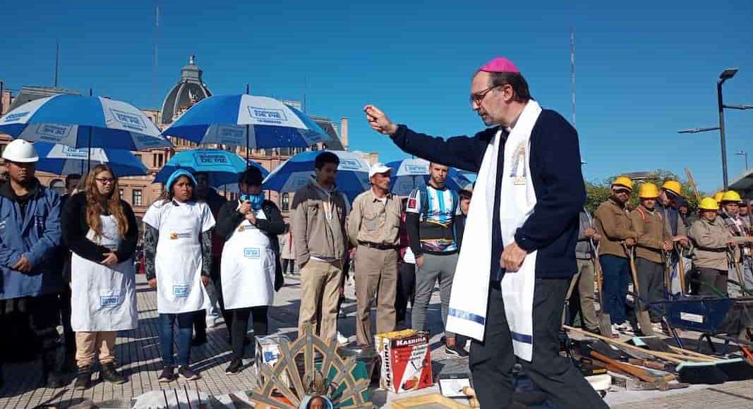 El Vicario episcopal para las villas de CABA, Gustavo Carrara bendijo ayer las herramientas de los jornaleros de la economía popular, sostuvo que Dios se manifiesta al hombre a través del trabajo y pidió rezar por los más frágiles de nuestra patria. En el Día de San José Obrero, en una ceremonia realizada en Plaza Constitución – como hacía el hoy papa Francisco, el obispo villero se refirió al «ataque» a la Casa de Acompañamiento Comunitario de la UTEP, ocurrido el domingo en la localidad de San Nicolás.