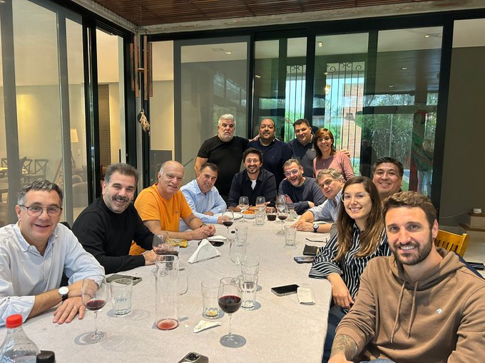 Compartieron el asado en la casa de Grindetti: Santiago López Medrano, Hernán Bertellys (Azul), Walter Lanaro, Roberto Quattromano, Finocchiaro, Matías Ranzini, Yeza, Rita Sallaberry (Lujan). Karina Spalla, Adrian Urrelli y Gustavo Vélez.