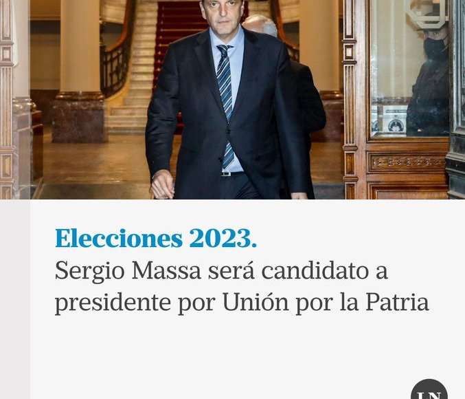 El ministro de Economía, Sergio Massa, será finalmente el candidato a presidente por el oficialismo, secundado en la fórmula por el jefe de Gabinete, Agustín Rossi. Así lo anunció esta noche oficialmente el frente Unión por la Patria (UP) en sus redes sociales.