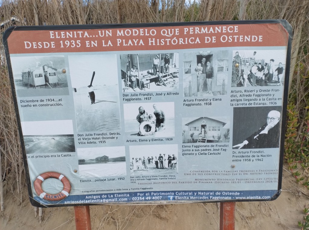 Cuando uno camina, en este invierno benigno, por las playas de Ostende, se topa a unos 4 kilómetros del muelle de Pinamar, acechada por un médano, con una casita de madera construida en 1935 por las familias Frondizi y Faggionato, Impacta su pequeñez y aparente desprotección, más los carteles que refieren que allí, en Estocolmo 2, veraneaba Arturo, el expresidente desarrollista (1958-1962); y el nombre de la morada, levantada sobre pilotes: Elenita (en homenaje a la única hija del matrimonio), inscripta en un típico salvavidas anaranjado circular, con cuatro franjas blancas.