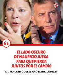 Antes de que Patricia Bullrich comunicara en alianza con Mauricio Macri este mediodía que se plegará a la candidatura de Javier Milei, la líder de la Coalición Cívica, Elisa Carrió, expuso su malestar al respecto. De hecho ya había marcado diferencias con el expresidente en otras oportunidades, por considerar equivocada su estrategia “de ir a los extremos” durante la campaña. Esta mañana, la exdiputada nacional que llamó a impugnar el voto en el balotaje fustigó al antes mandatario. “Siempre jugó para Milei y la destrucción de Juntos por el Cambio”, sostuvo sobre Macri, convencida de que el kirchnerismo -representado en Sergio Massa– “ya ganó”.