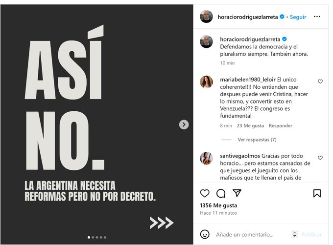 El exjefe de gobierno porteño, Horacio Rodríguez Larreta, expresó su desacuerdo con el Decreto de Necesidad y Urgencia (DNU) recientemente firmado por el presidente Javier Milei. Si bien destacó la importancia de realizar reformas en Argentina, subrayó que estas no deben implementarse a través de decretos presidenciales.