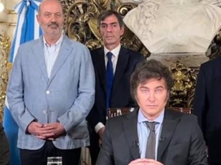 En simultáneo, el Menem Trucho ya se había asegurado la parsimonia del «prime time» para vociferar, durante la noche, la primera cadena nacional. Rodeado por la totalidad del “gabinete” y con el agregado de Federico Sturzenegger, El Bailarín Compadrito. Una suerte de director técnico justamente ataviado con el vestuario insólito del turista veraniego que pasaba “por Balcarce a saludar”. El objetivo de Milei, milimétricamente calculado, consistía en oficializar el decretazo del que aún se habla. E impedir, en especial, que al día siguiente, en los medios, se osara comentar la algarada desafiante de Belliboni.