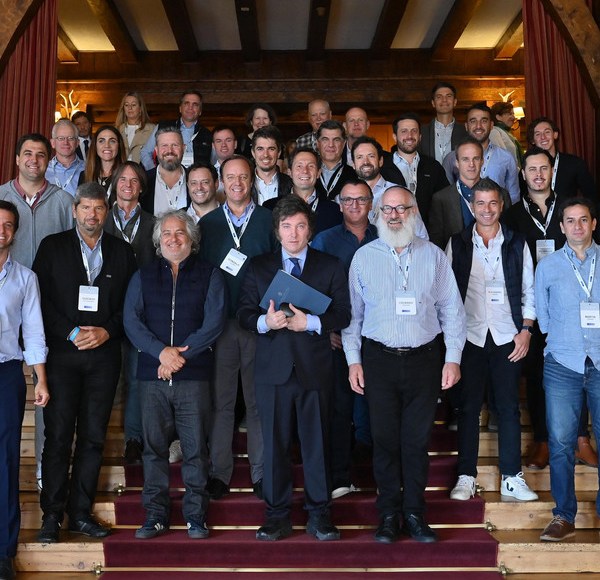 «El impactante discurso del presidente ante el foro de empresarios que se reunió para aclamarlo extasiado en el Hotel Llao Llao – destacó -, coincidió con el regreso de la comitiva de Luis Caputo con las manos vacías desde Washington».