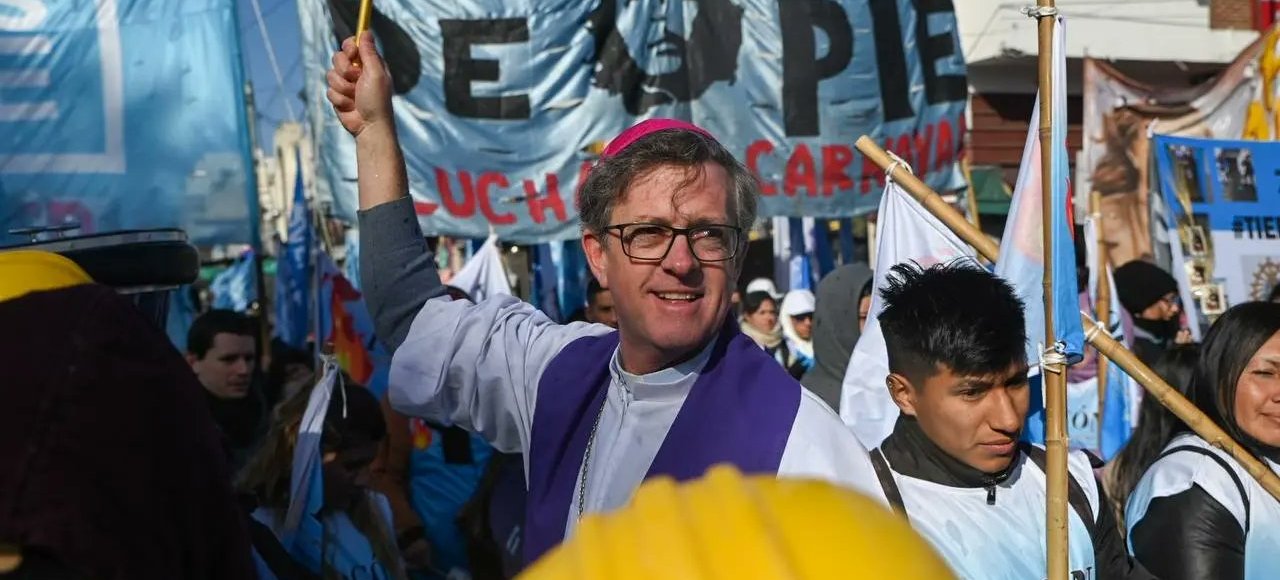 A primera hora de la mañana y antes de oficiar el acto litúrgico, García Cuerva junto al obispo Gustavo Carrara, vicario general de la arquidiócesis de Buenos Aires, bendijo los manifestantes de movimientos sociales, organizaciones gremiales y defensoras de los derechos humanos, que se congregaron en las inmediaciones del templo porteño para iniciar desde allí su movilización hacia la Plaza de Mayo en protesta contra la política económica del gobierno de Javier Milei.