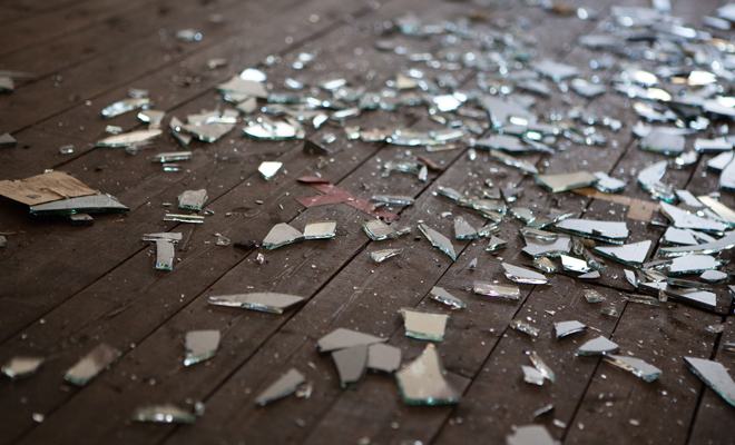 Cuando algo se rompe, los vidrios rotos se esparcen por doquier. Pudo haber sido un accidente o un acto intencional. Muy difícilmente sea esto último, ya que la destrucción consciente es más propia de los esporádicos momentos de locura extrema. Aparecen cada tanto, y lo que hacen es destruir algo íntegramente. Se cae el objeto de vidrio al piso y se deshace en cien pedazos.