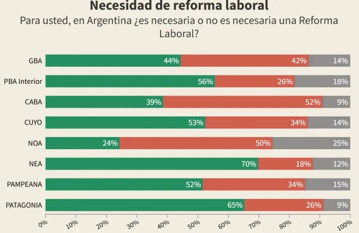 0 comments on “Reforma laboral: respaldo en Cuyo, NEA y Patagonia; mayor rechazo en CABA y AMBA”