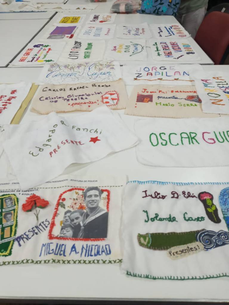 -La idea de bordar los nombres de los desaparecidos en estos tiempos y unirlos en esta historia contemporánea, en estos tiempos, tiene una razón:¡no me olviden, no me olviden por favor!. Tratamos de visibilizarlos porque la memoria es la mayor rebeldía contra el olvido y nosotros no queremos olvidar. Es una forma de resistir al negacionismo. Los traemos para que sepan porqué luchamos. Algunos fueron compañeros míos, otros fueron compañeros de otros y es muy importante traerlos para que sepan porqué luchamos en la época del 70 y porqué hubo grandes movilizaciones sociales, porqué surgieron grandes organizaciones, no sólo en los ´70; sino, que ya venían de antes…